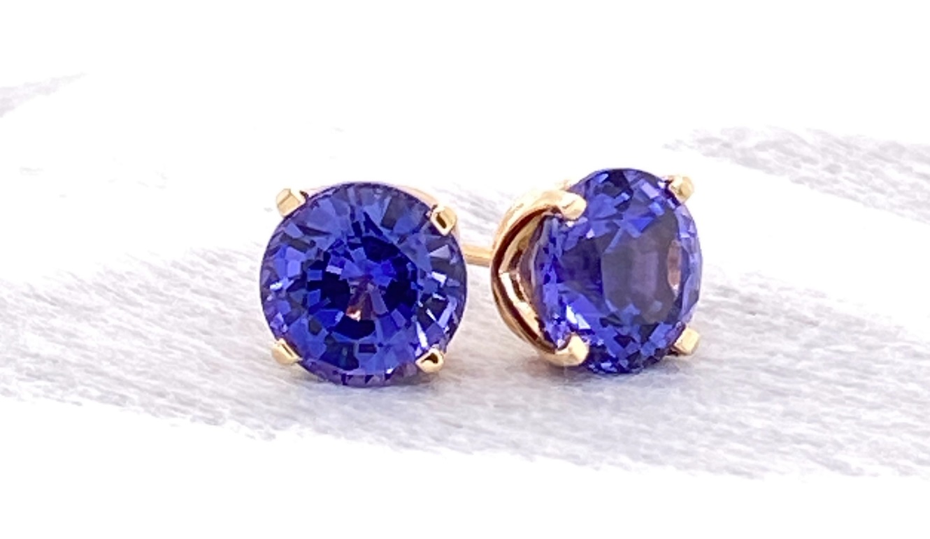 14K Tanavyte Sapphire Round 4 Prong Stud Earrings